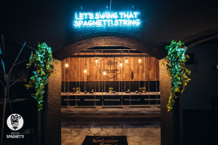 Uniek aan deze zaak is onze groepsruimte met de eerste Spaghetti Swing. Dit is een unieke schommeltafel in België gemaakt door James Feraine Woodworks, waar de ruimte dan ook naar vernoemd is. Deze tafel geeft een unieke beleving voor maximaal 12 personen.